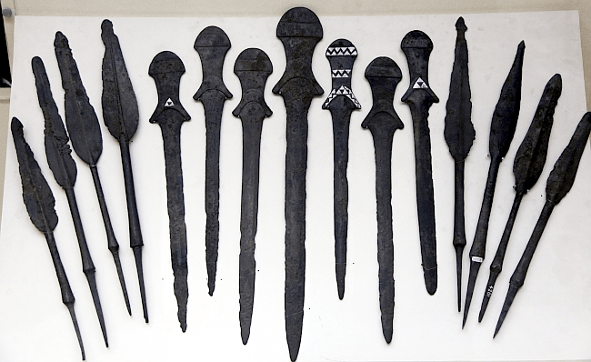 The oldest weapons that could be described as swords are from the site of Arslantepe in Turkey. Nine swords were discovered here in the 1980s and are 45-60 cm in length so are either short swords or long daggers. These are 5,000 years old, dating to around 3,300 BCE.