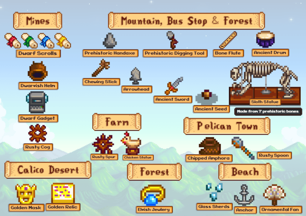 I will be using real-world terminology to explain these as we do not know the archaeological terminology or eras in the Stardew Valley Universe. All conclusions are my own interpretations and are open to debate!