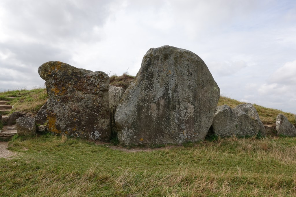 A long barrow is a type of monument from the early Neolithic period, often containing human remains within its chambers and usually interpreted as a type of tomb. West Kennet Long Barrow is one of the largest in Britain, measuring 100 meters in length and 20 meters in width. Although the exact construction date is unknown, it is estimated to have been built around 3650 BC. Constructing this monumental structure would have required moving tons of earth and stone, with an estimated 15,700 hours of labour. Inside, archaeologists have found cremated and skeletal remains of at least 46 individuals. The barrow was used for roughly 1,000 years and was likely closed around 2000 BC.