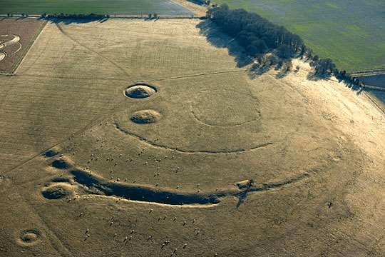 Around 3,675 BC, Neolithic people began constructing a large monument, now known as Windmill Hill. This causeway enclosure, still the largest of its kind in Britain, consists of three concentric ditches. This likely required around 62,000 hours of labour to dig. However, this wasn’t done all at once, it’s thought that groups worked on this over several years, maybe during the quieter period of the agricultural cycle. Archaeological finds reveal large numbers of cattle and sheep remains. This suggests that Windmill Hill may have been a place to hold festivals where animals were slaughtered and artefacts traded or site where ritual feasts were held or a combination.